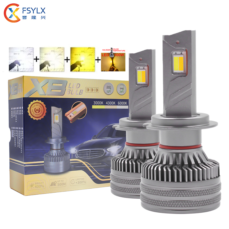 Автомобильные светодиодные фары X8 Fash Strobe 3 цвета, светодиодные фары, глобусы H1 H7 H11 9005 9006 9012 H13 9004 9007 H4, светодиодные противотуманные фары, автомобильные лампы